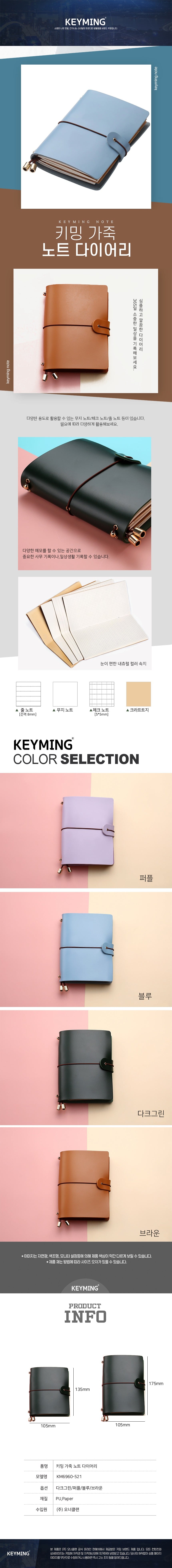 키밍 가죽 노트 다이어리 일기장 업무수첩 135x105mm