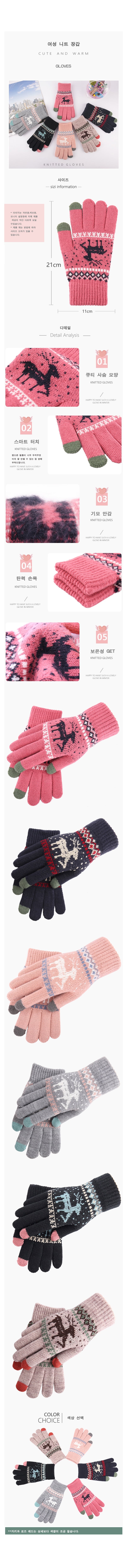 사슴 기모 겨울 니트 터치장갑 커플용 따뜻한 장갑