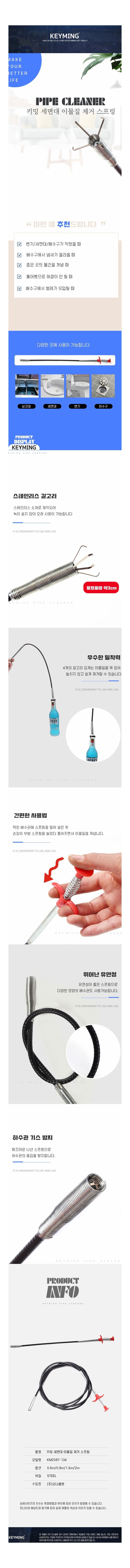 세면대 이물질 제거 스프링 뚫어 집게 화장실 클리너