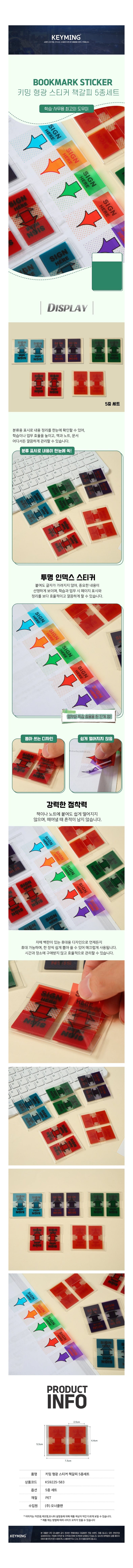 형광 스티커 책갈피 5종 컬러 세트 사무용 북스토퍼