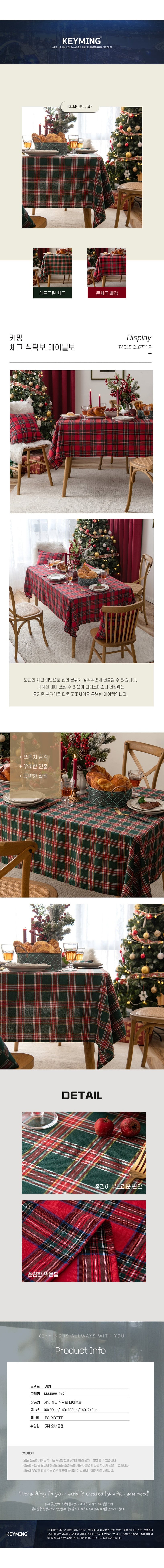 키밍 체크 무늬 식탁보 테이블보 인테리어 덮개 140180