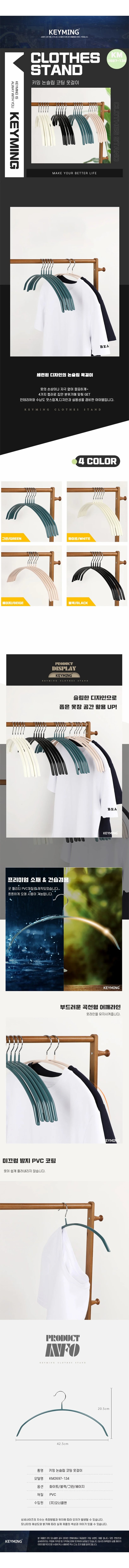 키밍 논슬립 코팅 옷걸이 세트 5개 미끄럼 방지 상의 전용