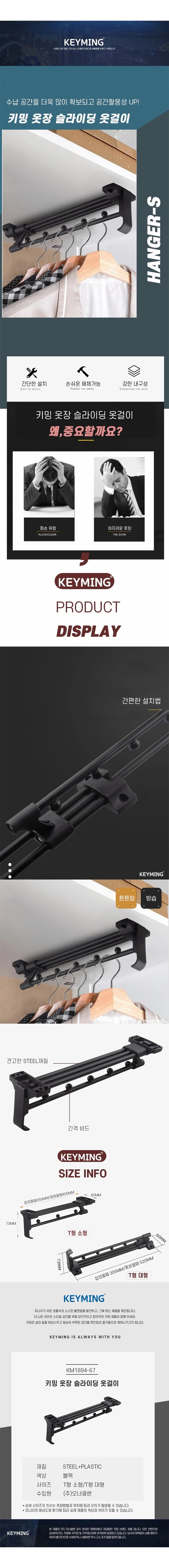 키밍 슬라이딩 옷걸이 옷레일 수납 정리 가구 행거