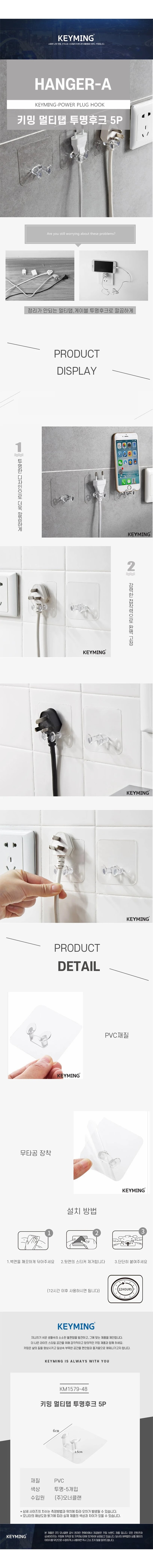 키밍 멀티탭 투명 후크 소품 행거 플러그 걸이 5개 세트
