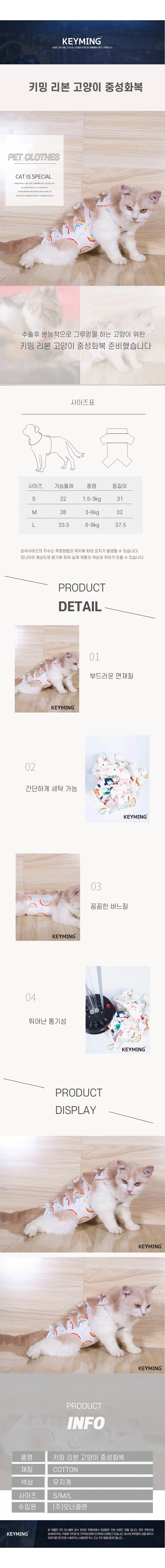 키밍 고양이 강아지 중성화복 리본 디자인 무지개 색상