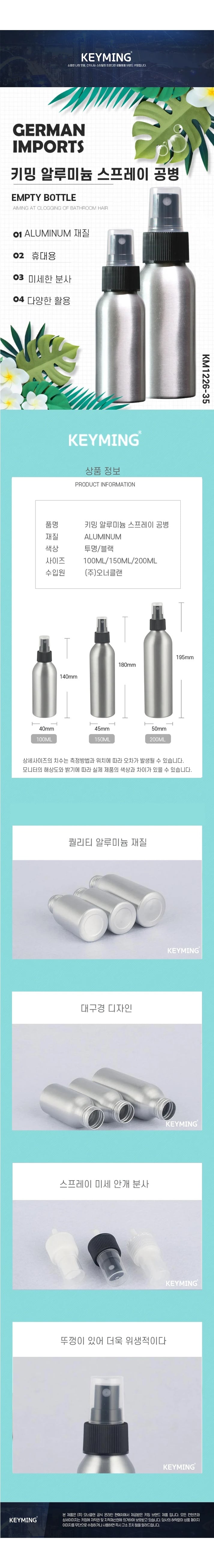 키밍 알루미늄 스프레이 공병 여행용 샴푸 리필 화장품
