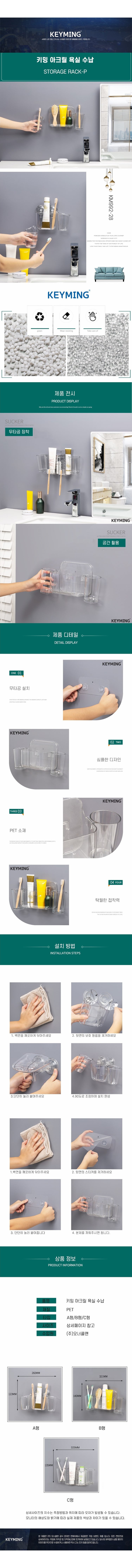 키밍 아크릴 욕실 수납 선반 물빠짐 칫솔꽂이 무타공 디자인