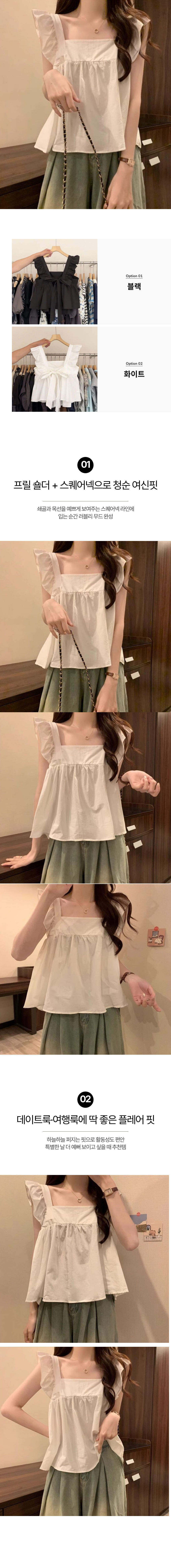프릴 리본 스퀘어 블라우스 (2Color) SWC-1006634