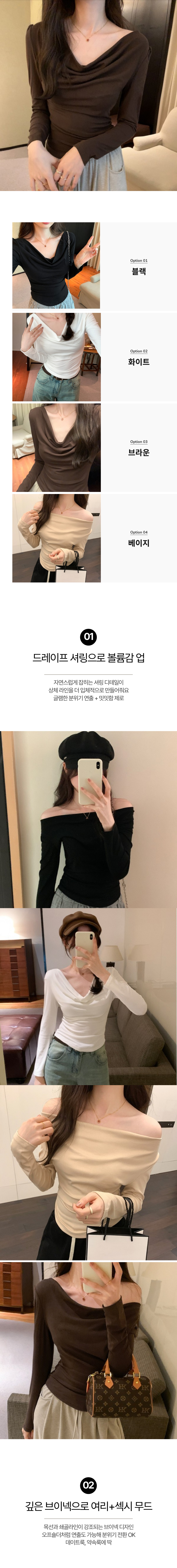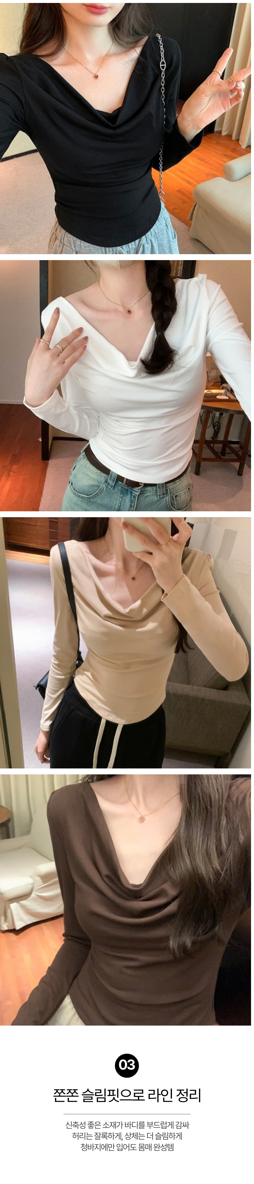 드레이프 브이넥 슬림 티셔츠 SWC-1006633