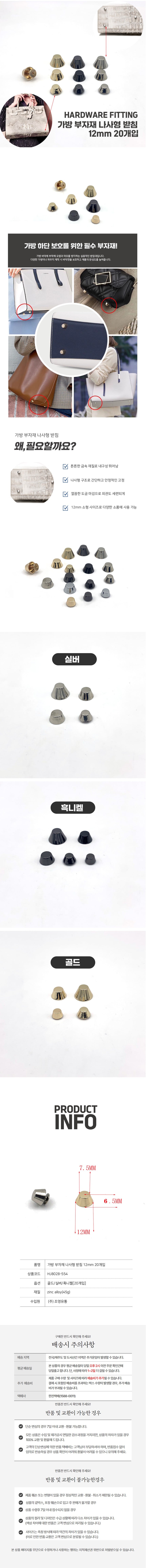 가방 부자재 나사형 받침 가방발 가방찡 12mm 20개입