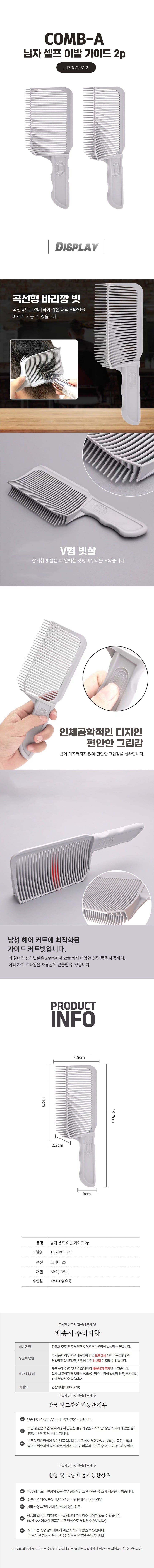 남자 셀프 이발 가이드 2p 미용머리빗 헤어빗 커트빗