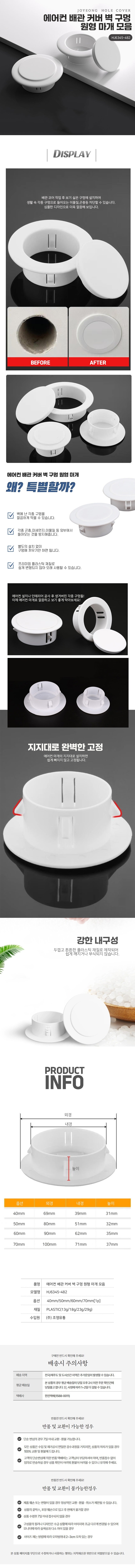 에어컨 배관 커버 벽 구멍 원형 마개 모음 뚜껑 60mm