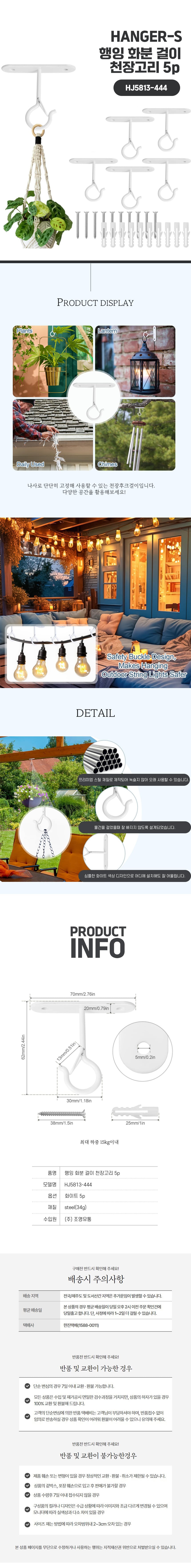 행잉 화분 걸이 천장고리 5p 후크 발코니 베란다 원예