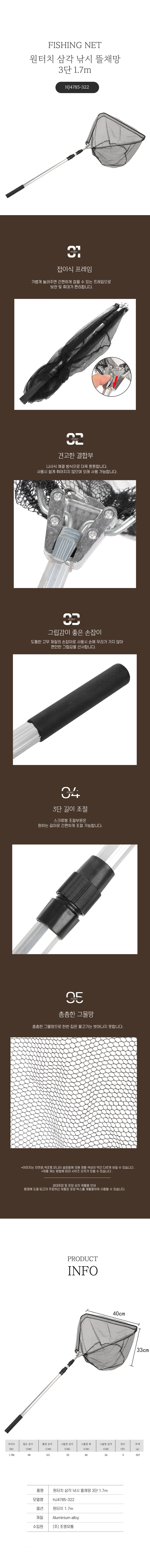 원터치 삼각 낚시 뜰채망 3단 1.7m 바다뜰채 민물뜰채