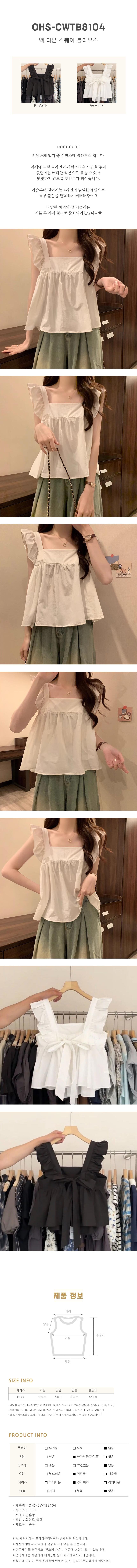 여성 여름 상의 백 리본 스퀘어 블라우스 나시