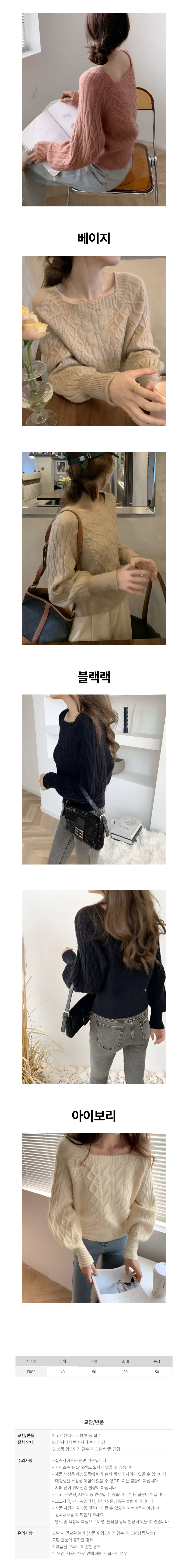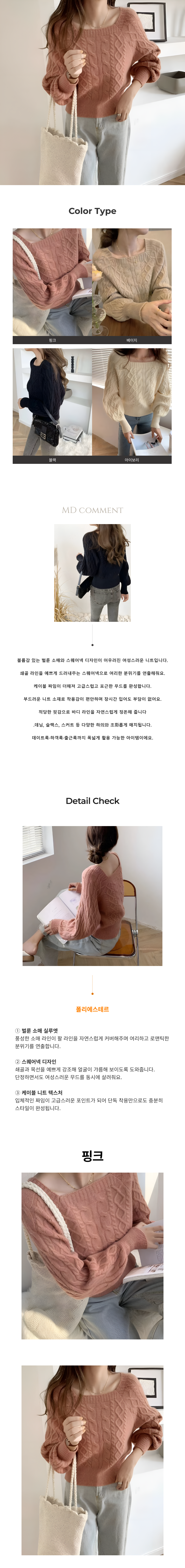 벌룬소매 스퀘어넥 케이블 니트 JSD-1005333