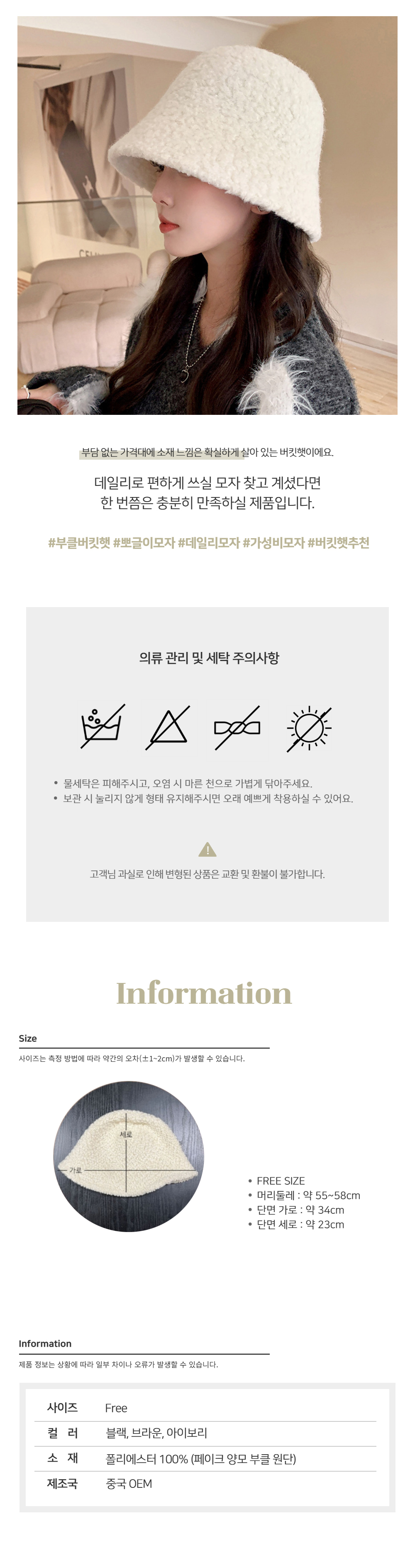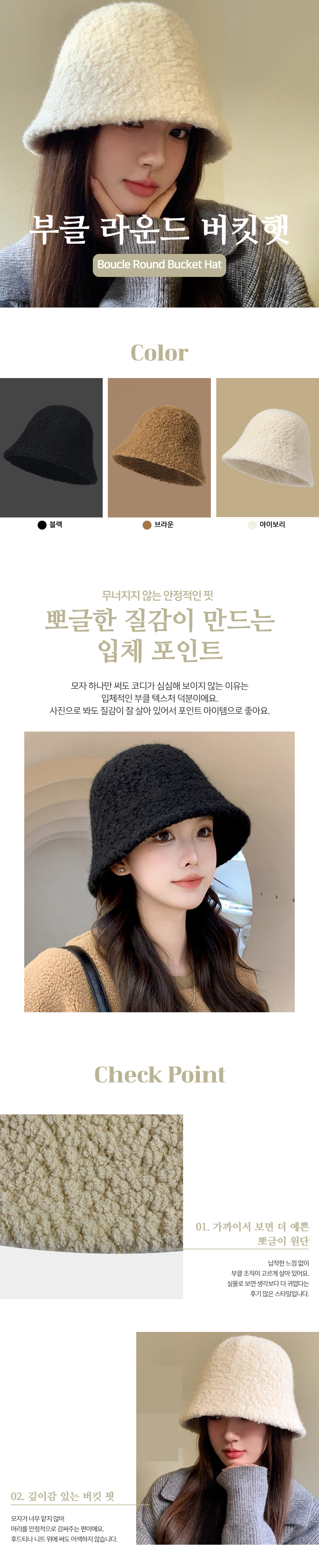 부클 니트 라운드 버킷햇 3color SL-1005176