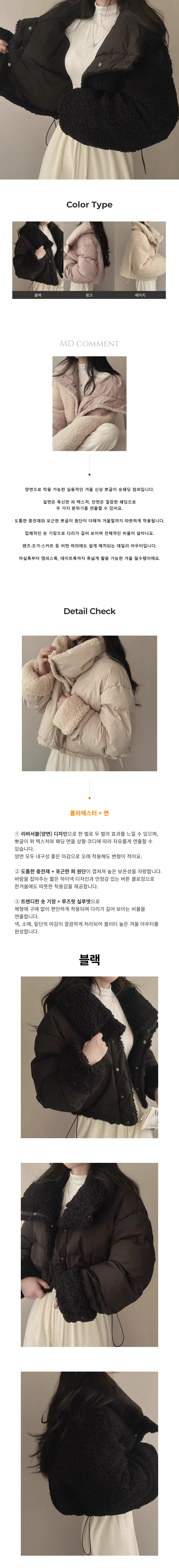 리버서블 양면 숏패딩 겨울 뽀글이 점퍼 JSD-1004788
