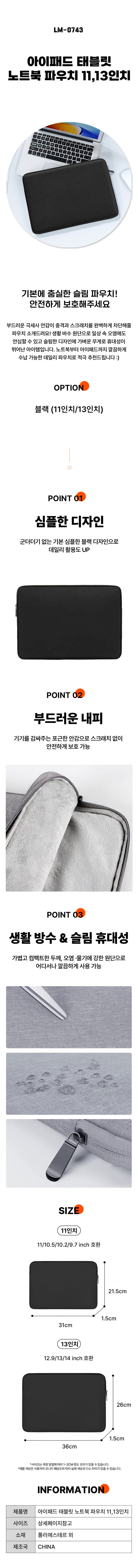 아이패드 태블릿 파우치 11인치 13인치 LM-1004590