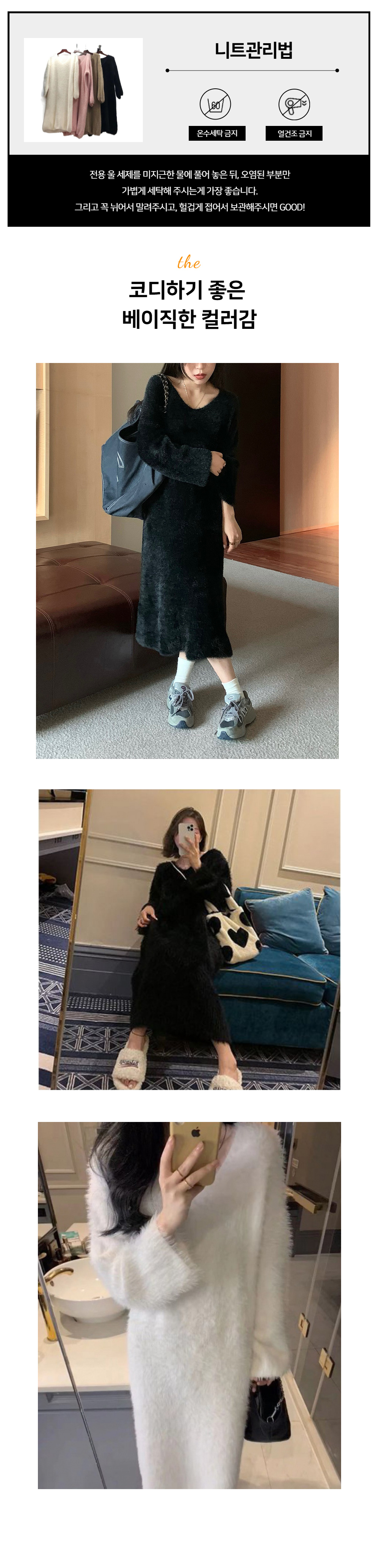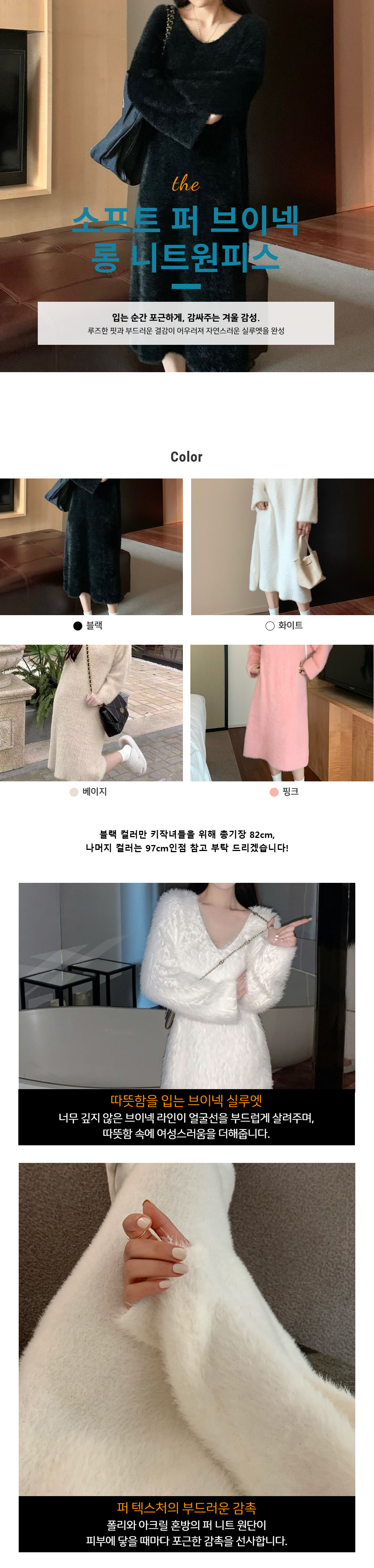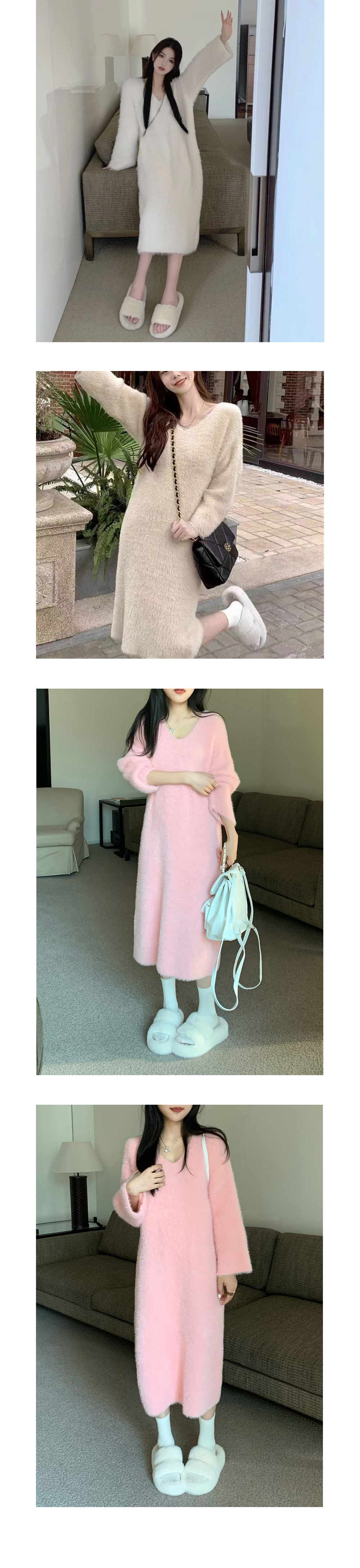 브이넥 퍼 롱 니트원피스 4color SL-1004491