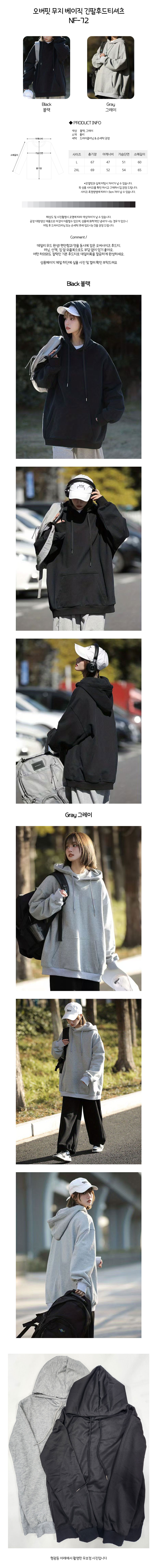오버핏 무지 베이직 긴팔후드티셔츠 NF-1004395