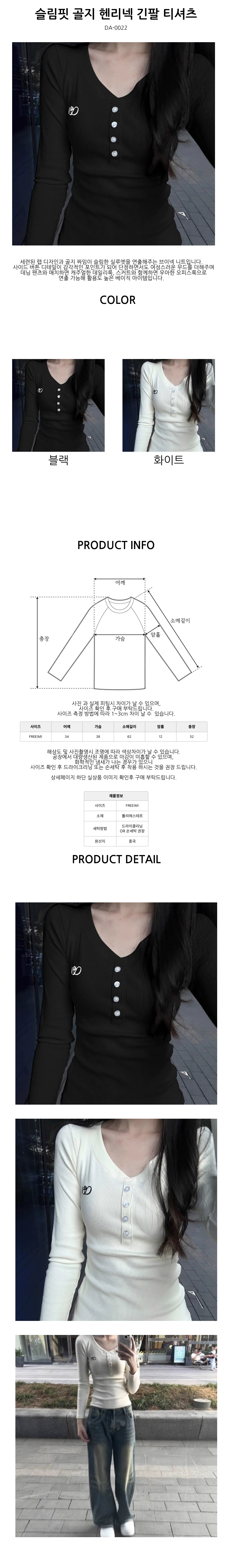 슬림핏 골지 헨리넥 긴팔 티셔츠 DA-1004393