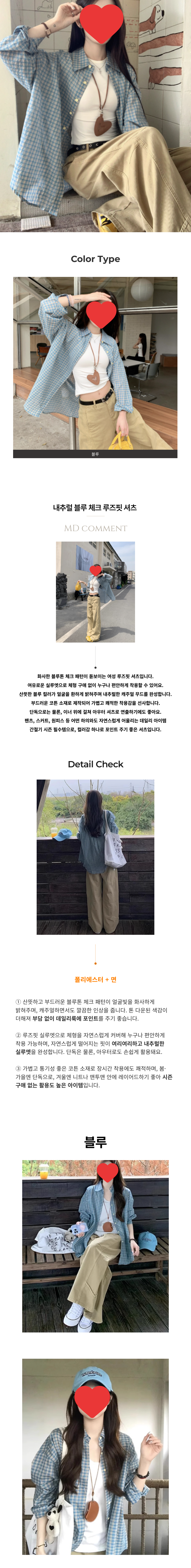 내추럴 블루 체크 루즈핏 셔츠 JSC-1004242
