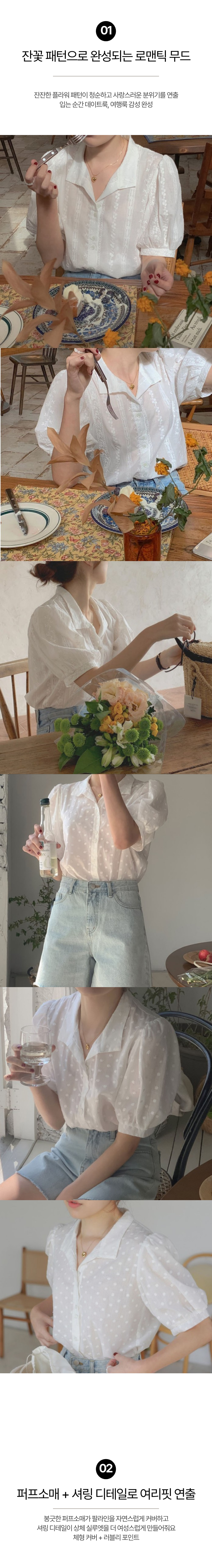 잔꽃 퍼프 브이넥 블라우스 SWC-1006871