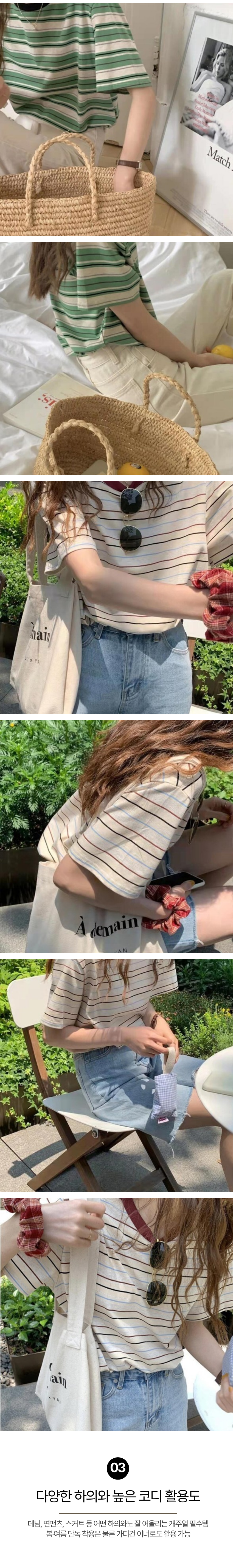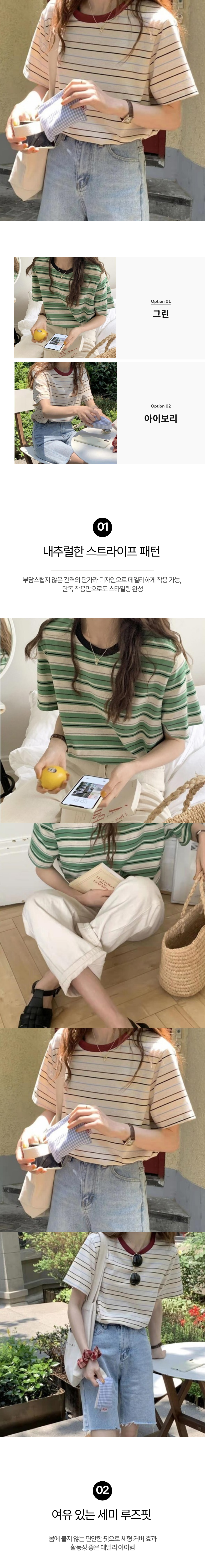 레트로 단가라 스트라이프 배색 티셔츠 SWC-1006543