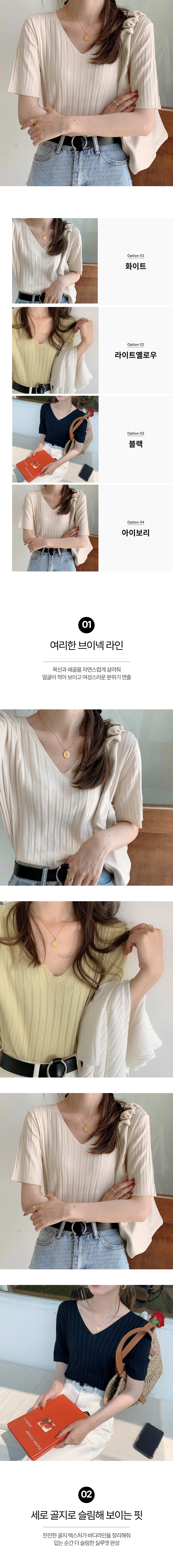 브이넥 골지 니트 반팔티 SWC-1007269
