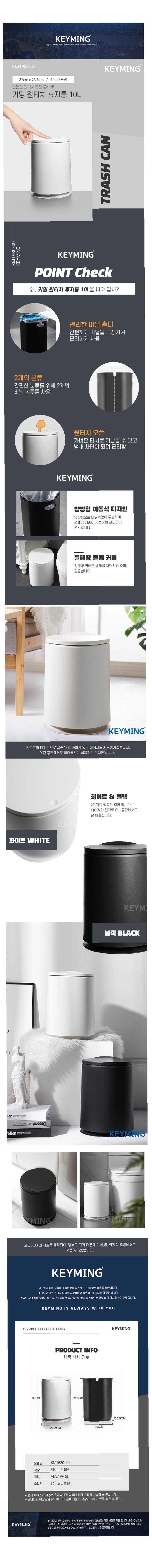 원터치 원형 휴지통 10L 욕실 거실용 실용적 디자인