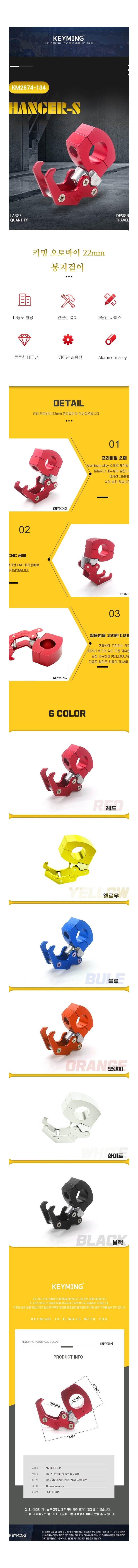 오토바이 헬멧 후크 가방걸이 22mm 봉지걸이