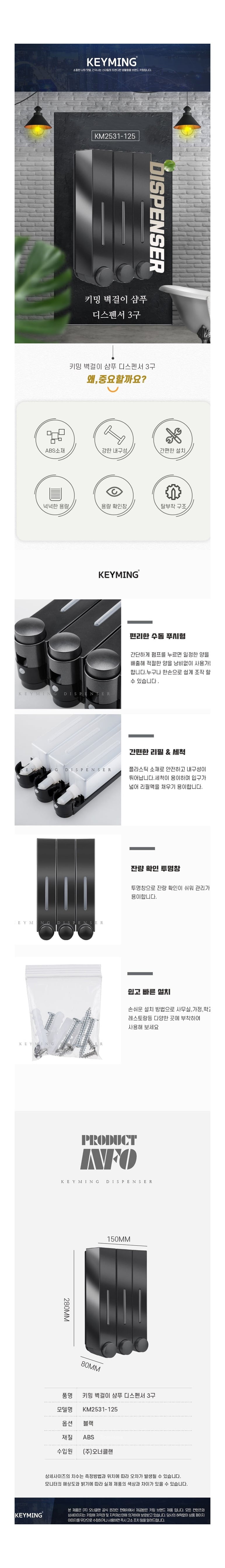 벽걸이 샴푸 디스펜서 3구 물비누 세제통 호텔용 세트