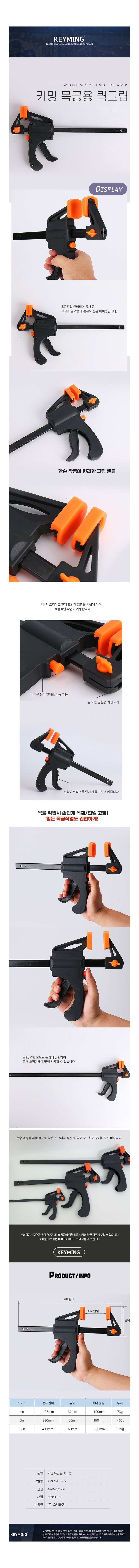 목공용 퀵그립 클램프 F형 6인치 고정 집게 공구