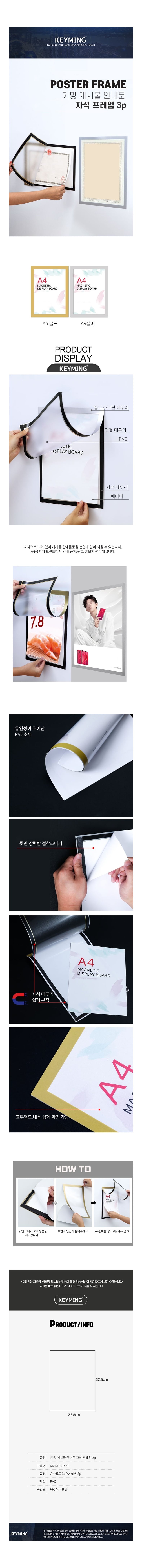 자석 게시물 안내 프레임 3개 세트 알림판 꽂이판