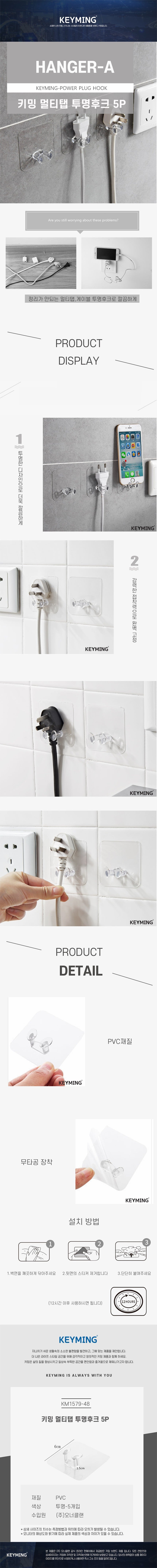 키밍 멀티탭 투명후크 5P 소품행거 플러그 걸이