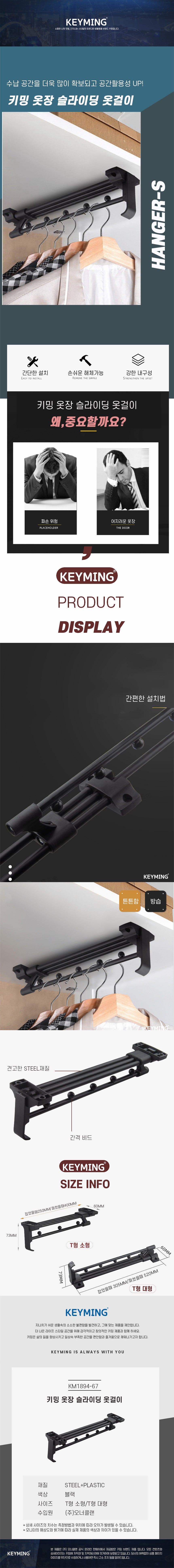 키밍 옷장 슬라이딩 옷걸이 옷레일 가구행거 수납정리