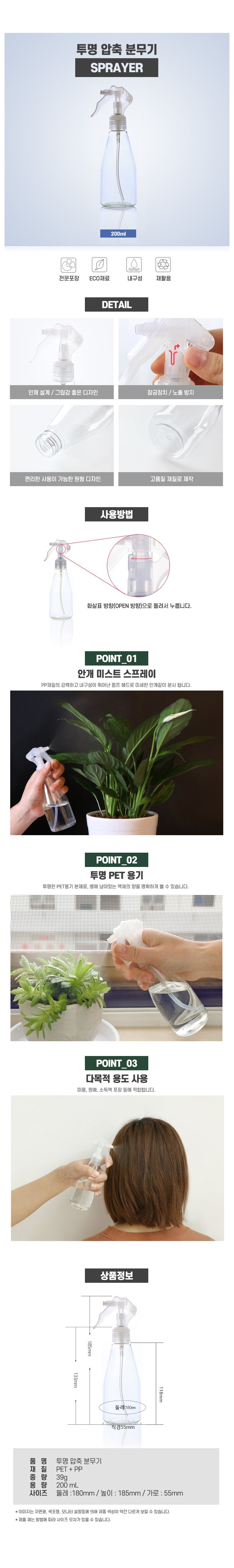 소형 투명 분무기 200 다용도 소독 분무기